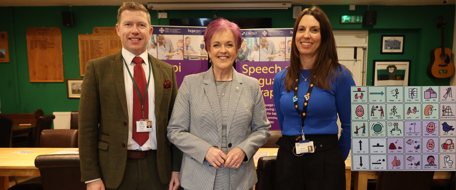 Our speech and language therapy (SLT team) has been part of the All-Wales ‘Talk With Me’ project. Across North Wales, communication boards have been installed in more than 300 parks. They display symbols with Welsh and English words to describe them. Another 50 have been placed in leisure centres and libraries.
