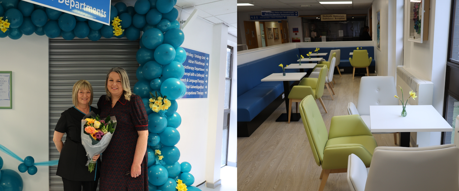 On behalf of Awyr Las Dyfed Jones, Chair of the Charitable Funds Committee, said: "It's great to see the final result of the improvements made possible at Ysbyty Gwynedd thanks to this jointly funded project between the Health Board and NHS Charities Together. This renewed space, with the addition of a small café, will better serve our staff, patients and visitors by providing comfort and refreshment when they are visiting the hospital site."